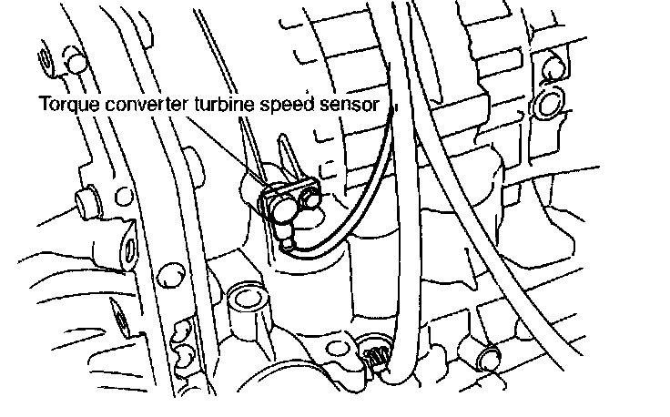 The torque converter turbine speed sensor (output shaft rotation sensor) is mounted to the transmission case (from the outside of the case).