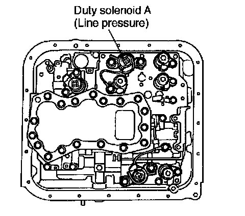 This solenoid is mounted to the control valve, and its duty ratio is controlled by the signal sent from TCM. This solenoid then controls the pressure modifier valve and accumulator control valve A to adjust the line pressure to an optimum pressure level suitable for operating conditions.