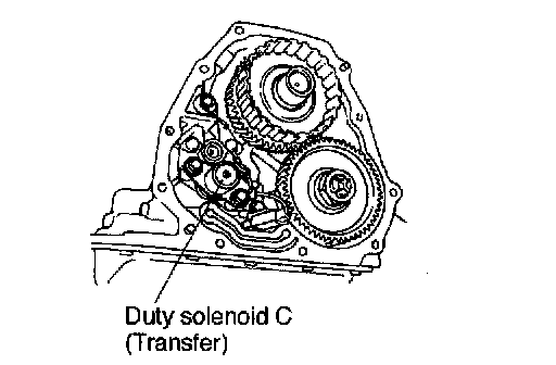 This solenoid is mounted to the transfer control valve on the rear end of transmission case, and its duty ratio is controlled by the signal sent from TCM. It then controls the transfer control valve for controlling the transfer clutch hydraulic oil pressure.