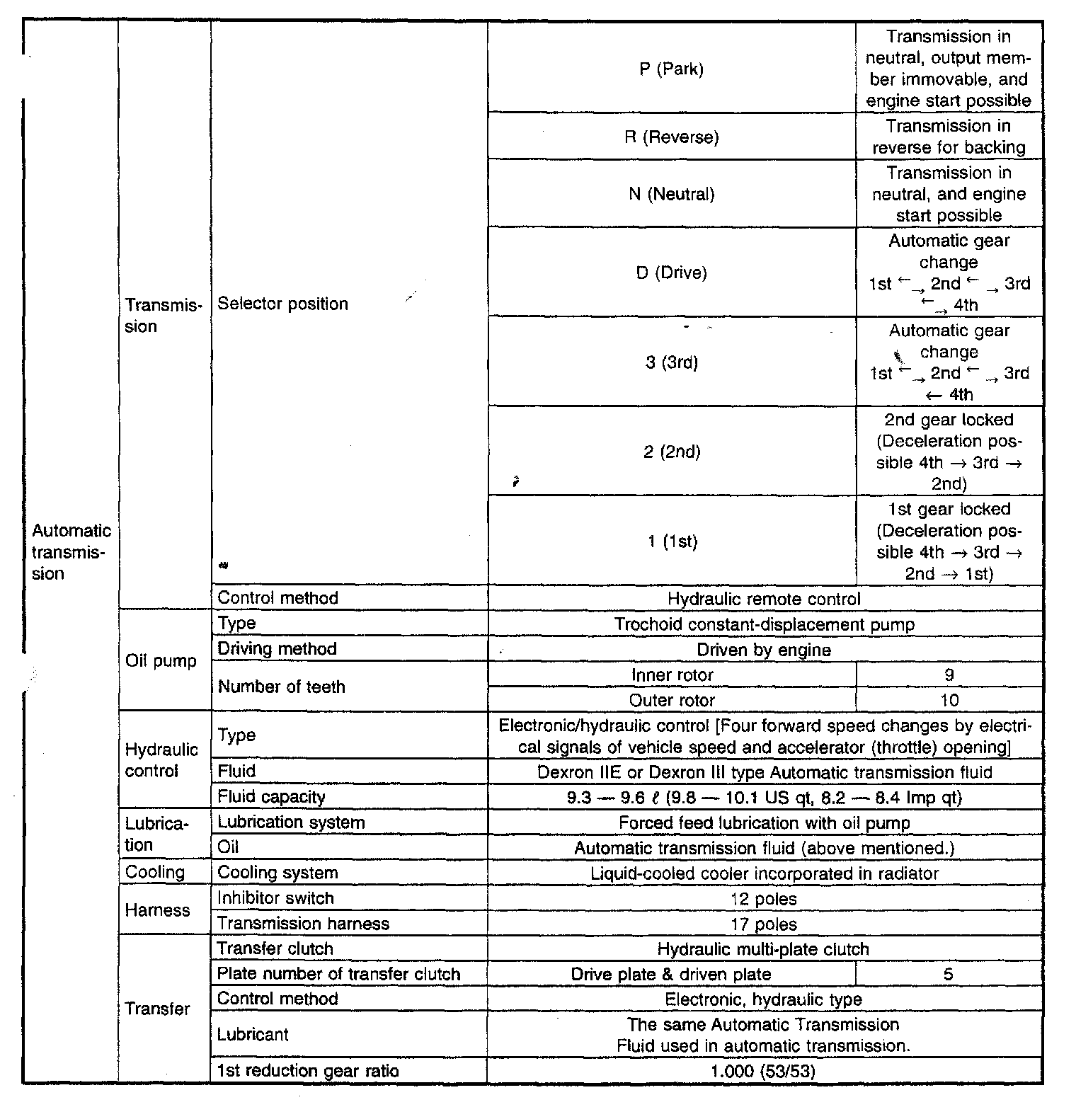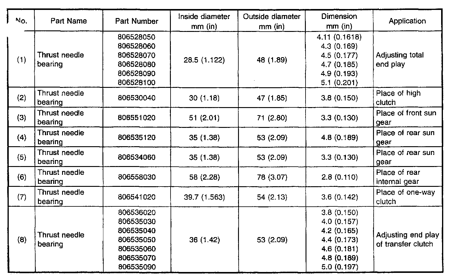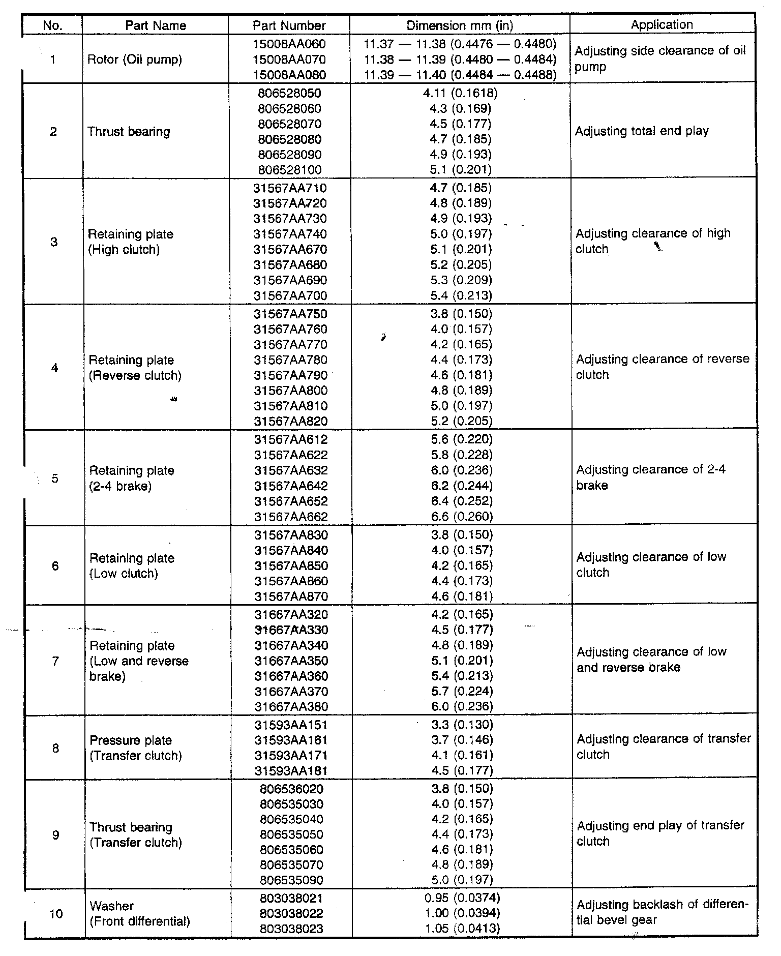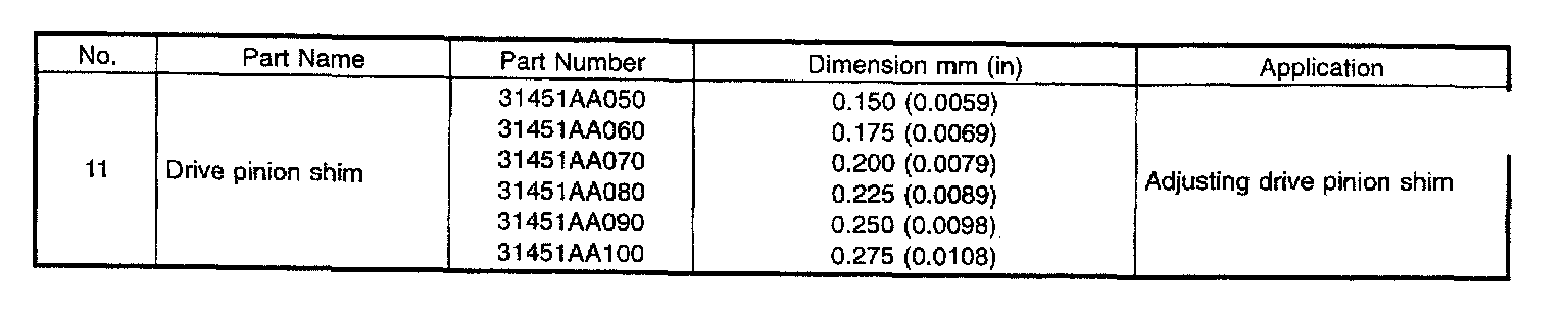 4-spd A/T, Transmission Drive Pinion Shim Application: