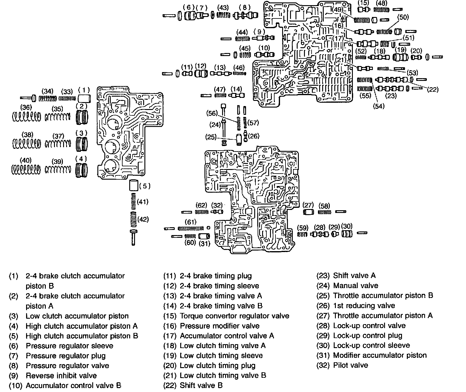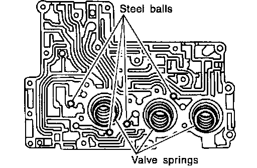 1) Install accumulator pistons, valve springs and steel balls to upper valve body.
