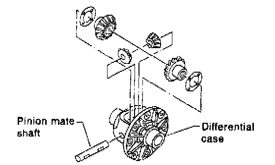 12) Install side gears and pinion mate gears, with their thrust washers and pinion mate shaft, into differential case.