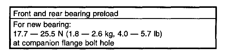 7. At the same time, measure the turning resistance of drive pinion. Compared with the resistance when differential case is not installed, if the increase of the resistance is not within the specified range, readjust side bearing retainer shims.