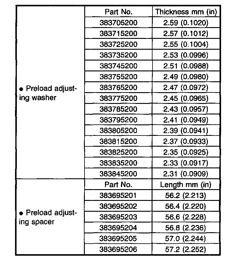 - Thoroughly clean the surfaces on which the shims, washers and bearings are to be installed.