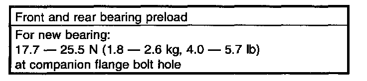 Adjust the bearing preload with spacer and washer between front and rear bearings. Pinion height adjusting washers are not affected by this adjustment. The adjustment must be carried out without the oil seal inserted.