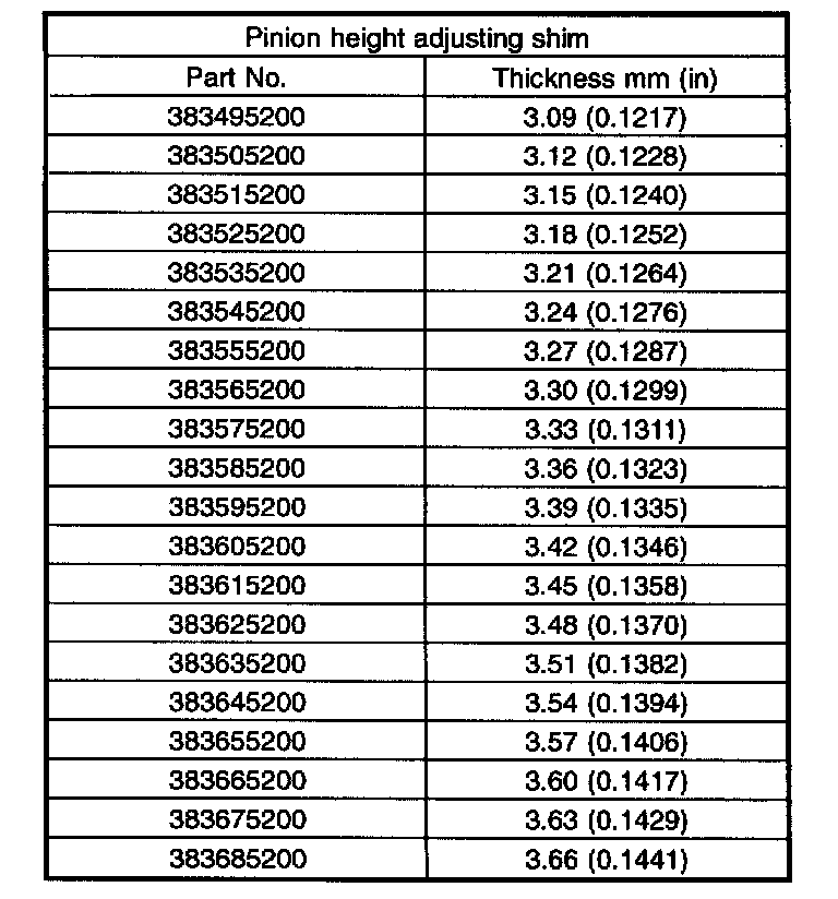 3. Obtain the thickness of pinion height adjusting shim to be inserted from the following formula, and replace the temporarily installed shim with this one.