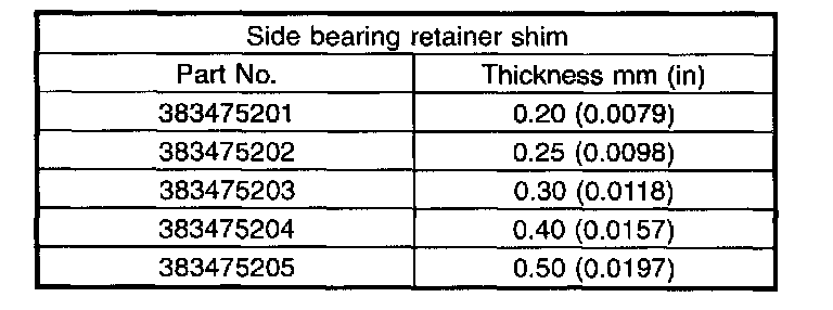 CAUTION: Each shim, which is installed to adjust the side bearing preload, should be kept together with its mating retainer.