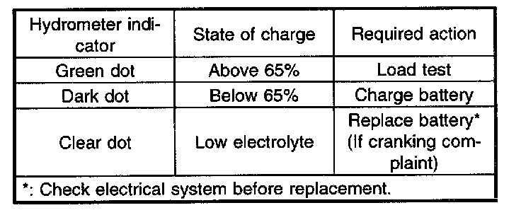 4. CHECK HYDROMETER FOR STATE OF CHARGE