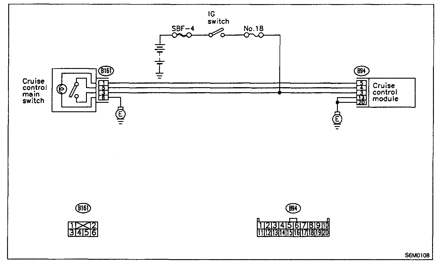 - Bulb failure or open harness of the indicator circuit in the cruise control main switch.