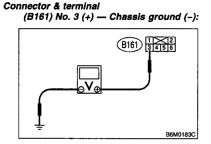 NOTE: Depress cruise control main switch with fingers while measuring voltage between (B161) No. 5 and chassis ground.