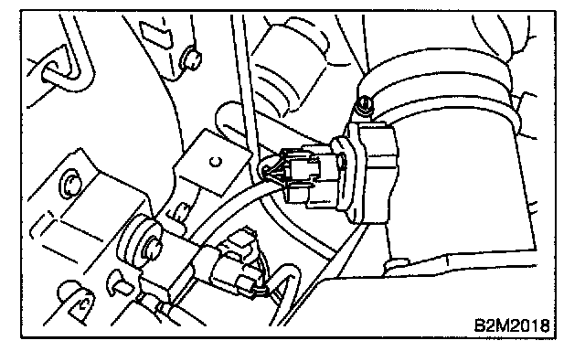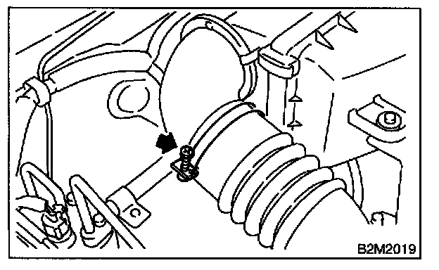 6. Loosen clamp which connects air intake duct to mass air flow sensor.
