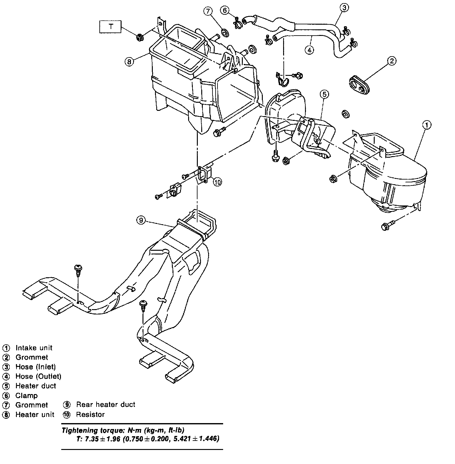 b. Torque heater unit attaching bolts to 5.4 - 9.3 Nm (4.0-6.9 ft. lbs).