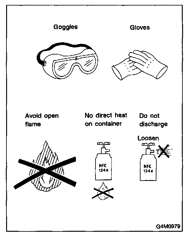 1. REFRIGERANTDo not put CFC-12 refrigerant into a HFC-134a air conditioning system. Also, do not put HFC-134a refrigerant into a CFC-12 air conditioning system. If the wrong refrigerant is used, poor lubrication will result and the compressor itself may be destroyed.