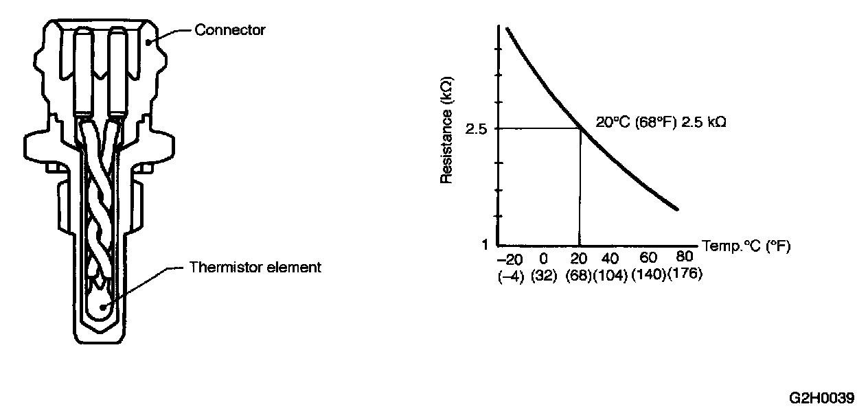 - The engine coolant temperature sensor is located on the engine coolant pipe which is made of aluminum alloy. Its thermistor changes resistance with respect to temperature. A engine coolant temperature signal converted into resistance is transmitted to the ECM to control the amount of fuel injection, ignition timing, purge control solenoid valve, etc.