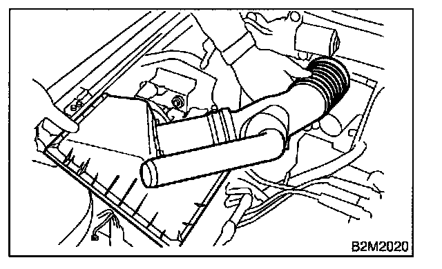 5. Remove air intake duct and air cleaner upper cover as a unit.