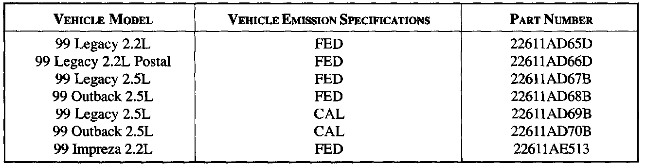 Some 99 MY Legacy and Impreza Manual Transmission Vehicles with 2.2L & 2.5L Engines.
