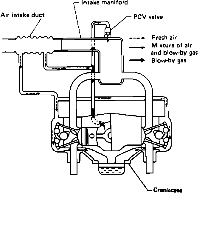 1. Check PCV hoses and connections for leaks and clogging. Hoses may be blown out with compressed air.