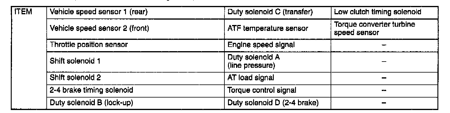 A: FUNCTIONThe on-board diagnostics system is capable of detecting any trouble which has occurred in any of the following input and output signal systems.