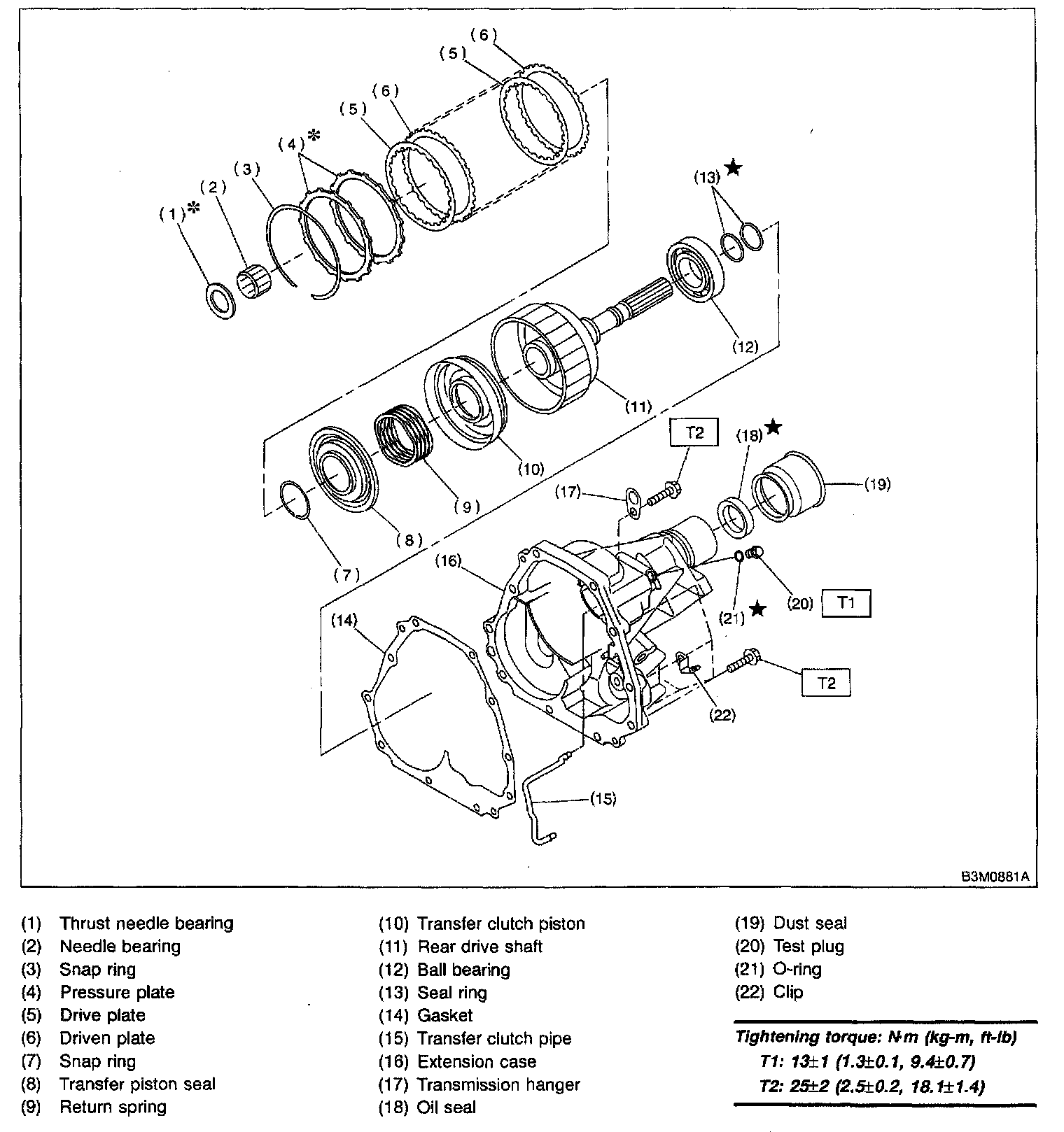 5-spd M/T. Transfer Case & Transmission Extension (AWD):