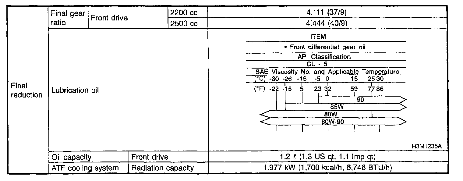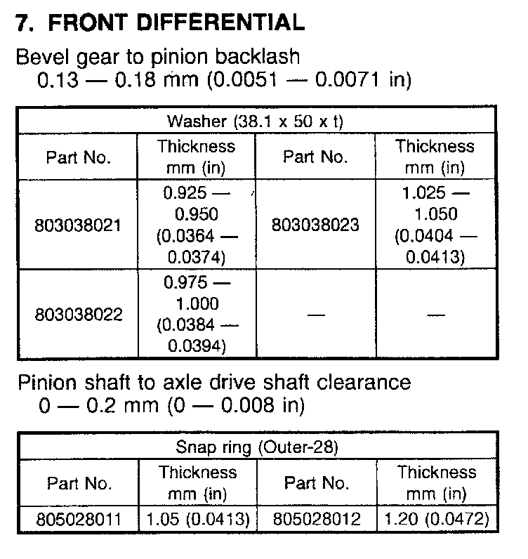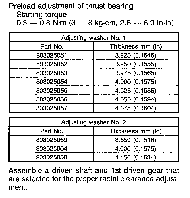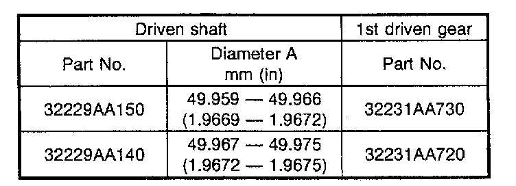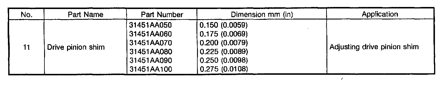 4-spd A/T, Transmission Drive Pinion Shim Application: