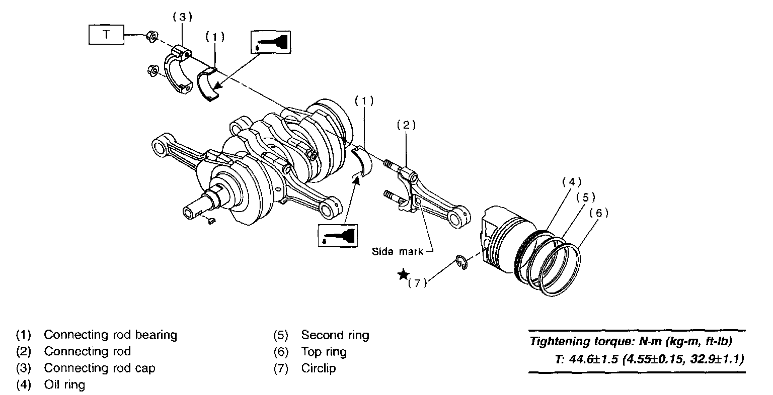 ^ When tightening the connecting rod nuts, apply oil on the threads.