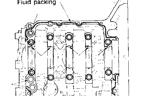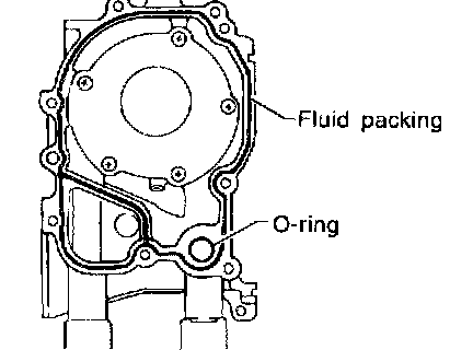 CAUTION: Do not allow fluid packing to jut into O-ring grooves, oil passages, bearing grooves, etc.