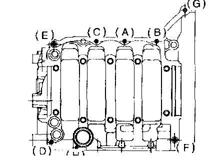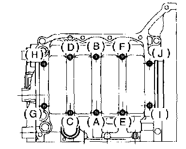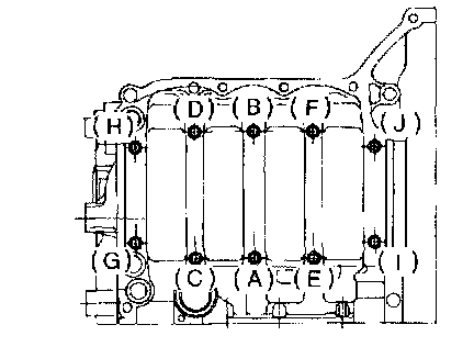 5. Tighten 10 mm cylinder block connecting bolts in alphabetical sequence.