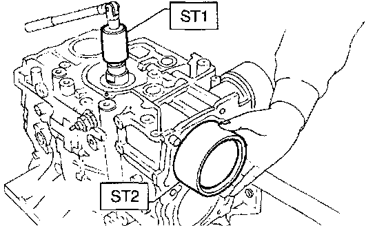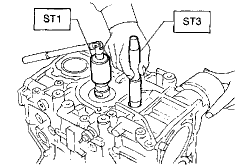 1. Install ST to cylinder block, then install crankshaft bearings.