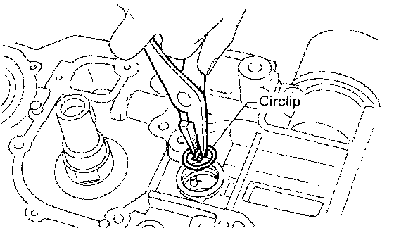 5. Install circlip. Install circlips in piston holes located opposite service holes in cylinder block, when positioning all pistons in the corresponding cylinders.