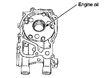 ^ Align flat surface of oil pump's inner rotor with crankshaft before installation.