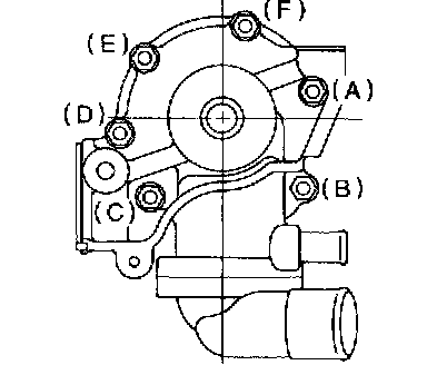 ^ When installing water pump, tighten bolts in two stages in alphabetical sequence as shown in figure.