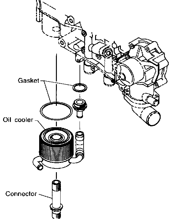 14. Install water by-pass pipe between oil cooler and water pump (AT vehicles only).