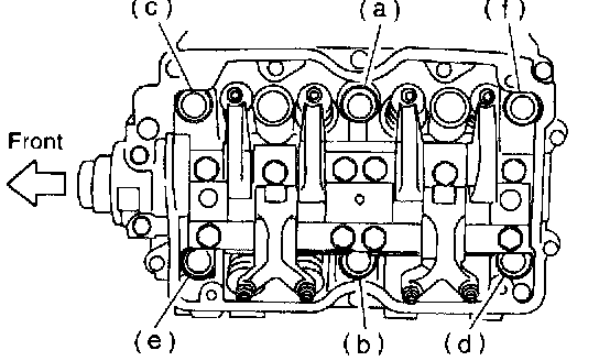 e. Tighten bolts (c), (d), (e) and (f) to 15 Nm (1.5 kg-m, 11 ft. lbs.).