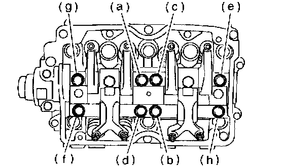 b. Equally loosen bolts (e) through (h) all the way, being careful that knock pin is not gouged.