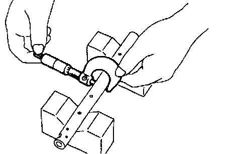 3. Measure inside diameter of rocker shaft support and outside diameter of valve rocker shaft, and determine the difference between the two oil clearance).