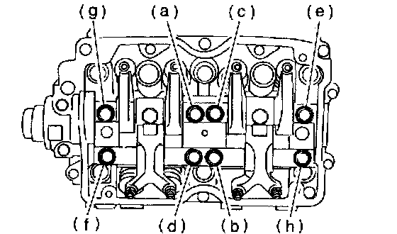 b. Tighten bolts (e) through (h) to specified torque.