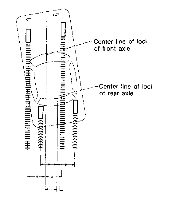 2. When one rear wheel is adjusted in a toe-in direction, adjust the other rear wheel equally in toe-out direction, in order to make thrust angle adjustment.
