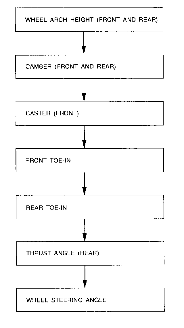 Check, adjust and/or measure wheel alignment in accordance with procedures indicated in figure.