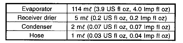 2. Drain the oil from the replacement compressor and refill with the same amount that was drained from the original [20 me (0.7 US fl.oz, 0.7 Imp fl.oz) minimum]. Always use DH-PR for the replacement oil.