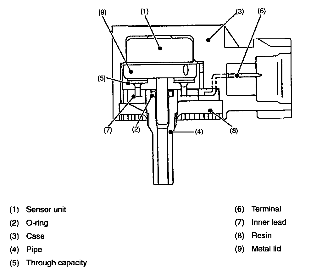 The atmospheric pressure sensor receives the atmospheric pressure, converts the pressure values into signals, and sends the signals to ECM.