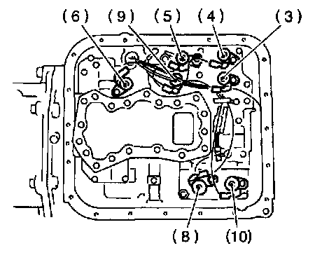 3. Shift Solenoid Valve 1, 4. Shift Solenoid Valve 2, 5. Line Pressure Duty Solenoid, 6. Lock Up Duty Solenoid, 8. 2-4 Brake Duty Solenoid, 9. Low Clutch Timing Solenoid Valve And 10. 2-4 Brake Timing Solenoid Valve: