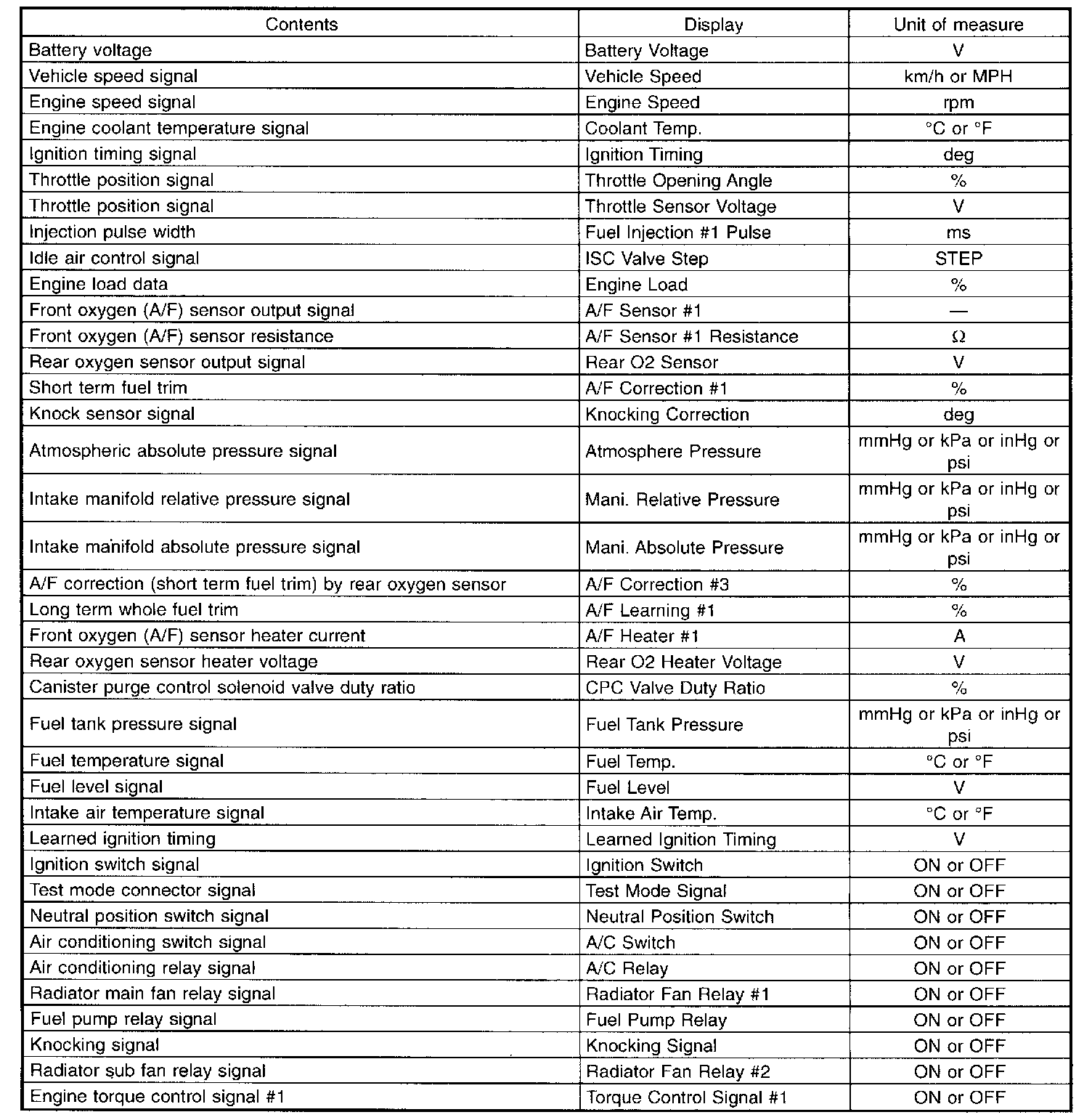 Read Current Data Shown on Display For Engine (Normal Mode)