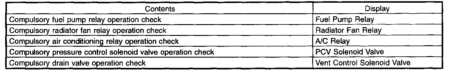 13. Pressing the [NO] key completes the compulsory operation check mode.The display will then return to the Actuator ON/OFF Operation screen.