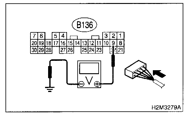 Connector & Terminal (B136) No.9 (+) - Chassis Ground (-):