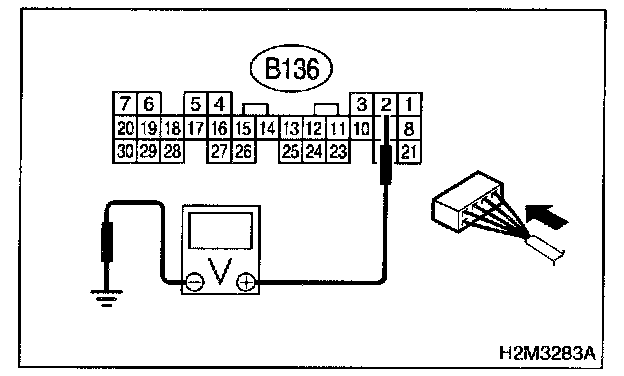 Connector & Terminal (B136) No.2 (+) - Chassis Ground (-):