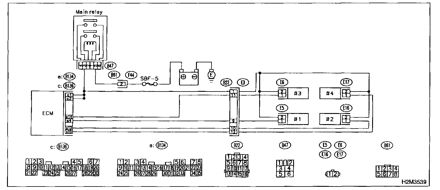 Connector & Terminal (B134) No.4 - (B136) No.2: