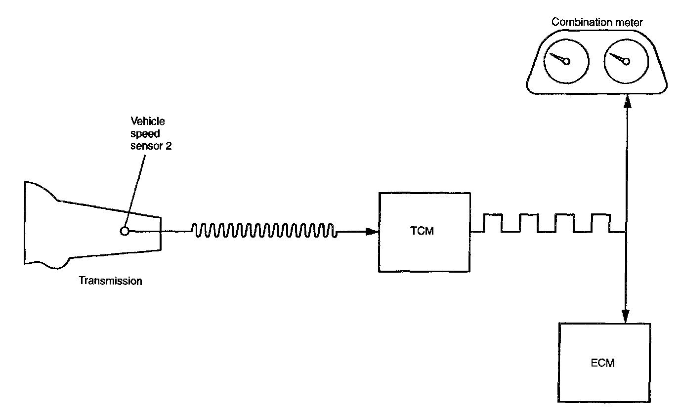 - The vehicle speed sensor 2 generates a 16-pulse signal for every rotation of the front differential and send it to the ECM. The signal sent to the ECM is converted there in a 4-pulse signal, and then sent to the ECM and the combination meter.
