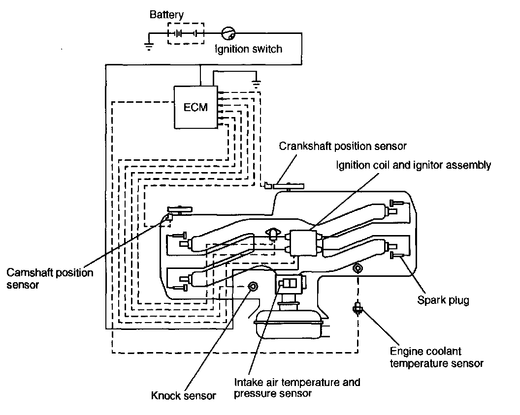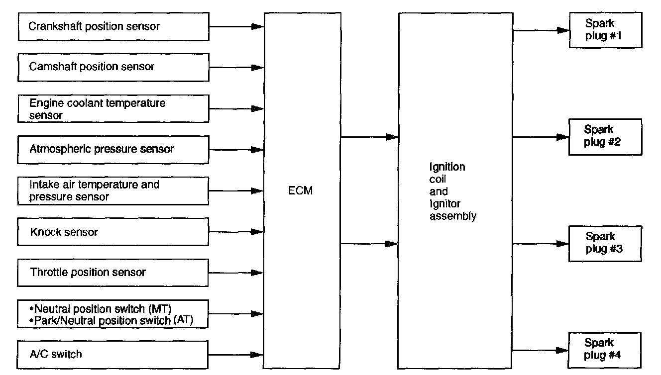 The ECM determines the optimal ignition timing according to signals sent from various sensors (which monitor the operating conditions of the engine), and sends a signal to the ignitor.