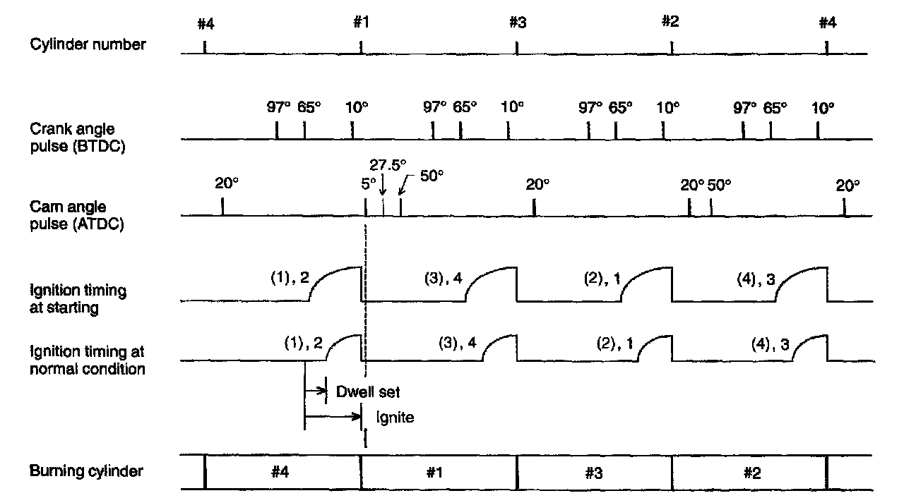 Between the 97° signal and the 65° signal, the ECM measures the engine speed, and by using this data it decides the dwell set timing and ignition timing according to the engine condition.