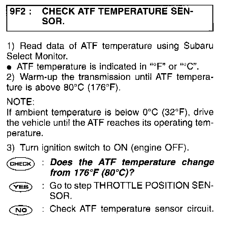 9F2 CHECK ATF TEMPERATURE SENSOR.